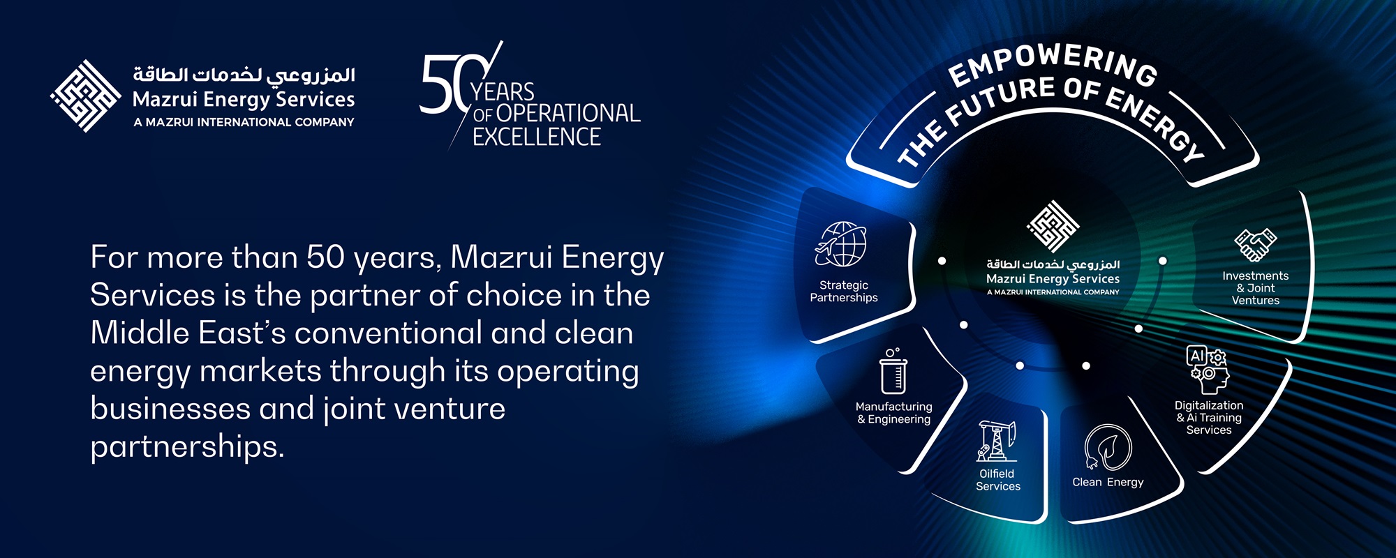 Since 2016, Mazrui Energy Services has proudly showcased its key operating companies, partners, and principals as unified technical solution providers, serving the energy sector in the UAE and MENA region.