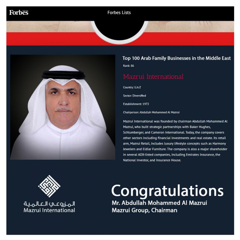 We are privileged to have been included in the Forbes Middle East Top 100 Arab Family Businesses list. Our significant transition from emerging business in 1972 to our position today as a group with an international presence makes us very proud. Not only is the Forbes list recognition of Arab family business success, but also a compelling calling card to companies from outside the region seeking to do business with leading Arab-owned enterprises.
